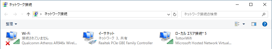 画像の場合は「ローカルエリア接続*5」が追加されていますね。