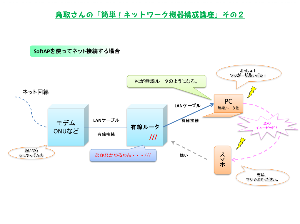 20178/25・・・SoftAPの活用シーンについて「パソコンを無線ルータ化するSoftAPの活用シーンまとめ。」をご参照ください。