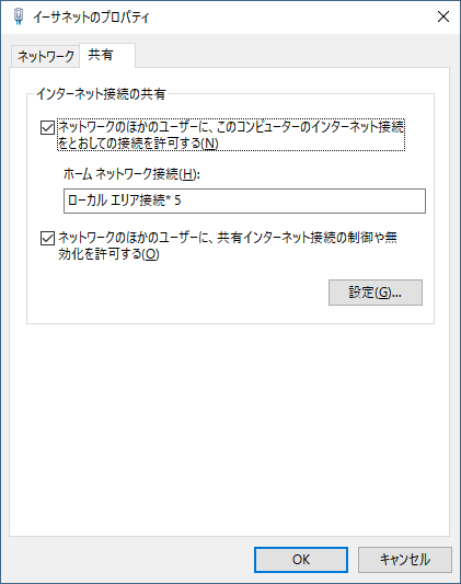 ネット接続の共有に関する設定方法
