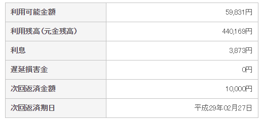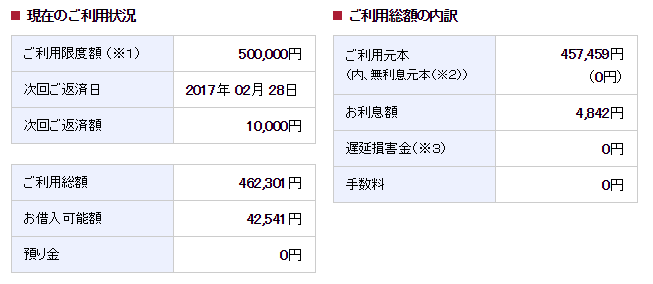 なお記載はありませんが、金利は14.6%と返済中の3つのカードローン中では一番低金利です。