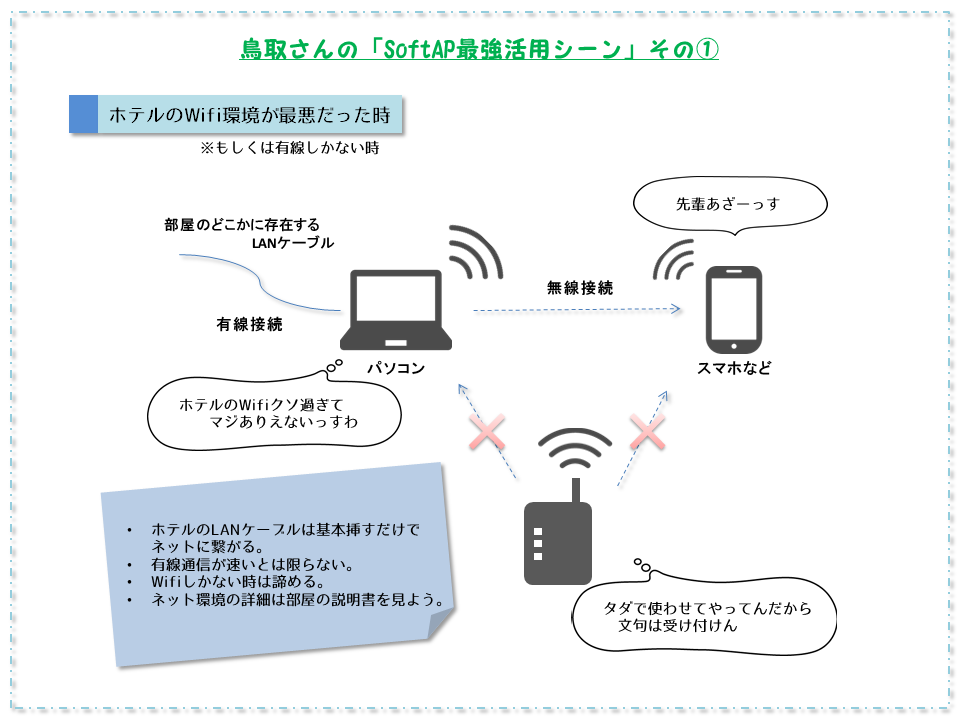 そんなSoftAPを有効活用できるシーンを3つ、考えてみました。