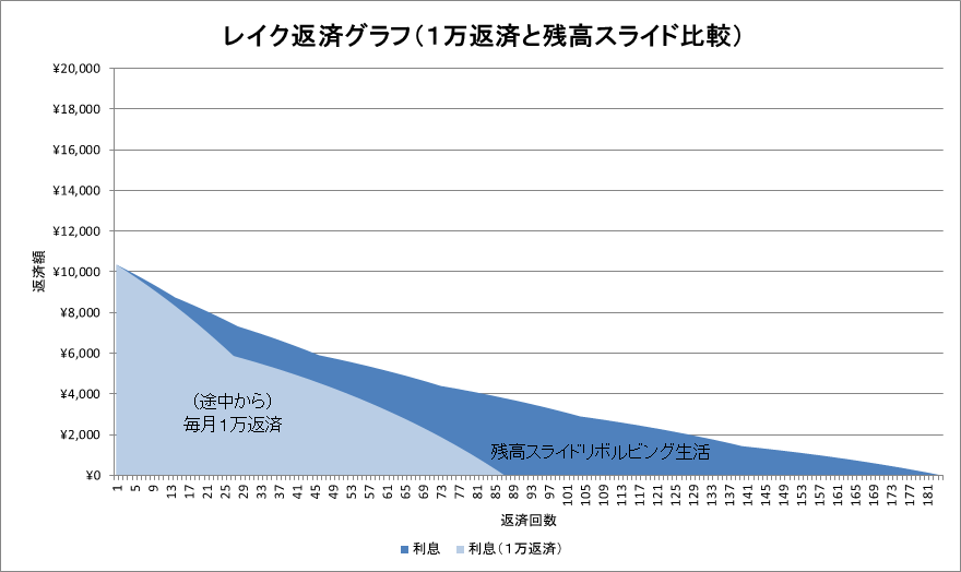 おまけ:途中から毎月1万円返済生活の場合