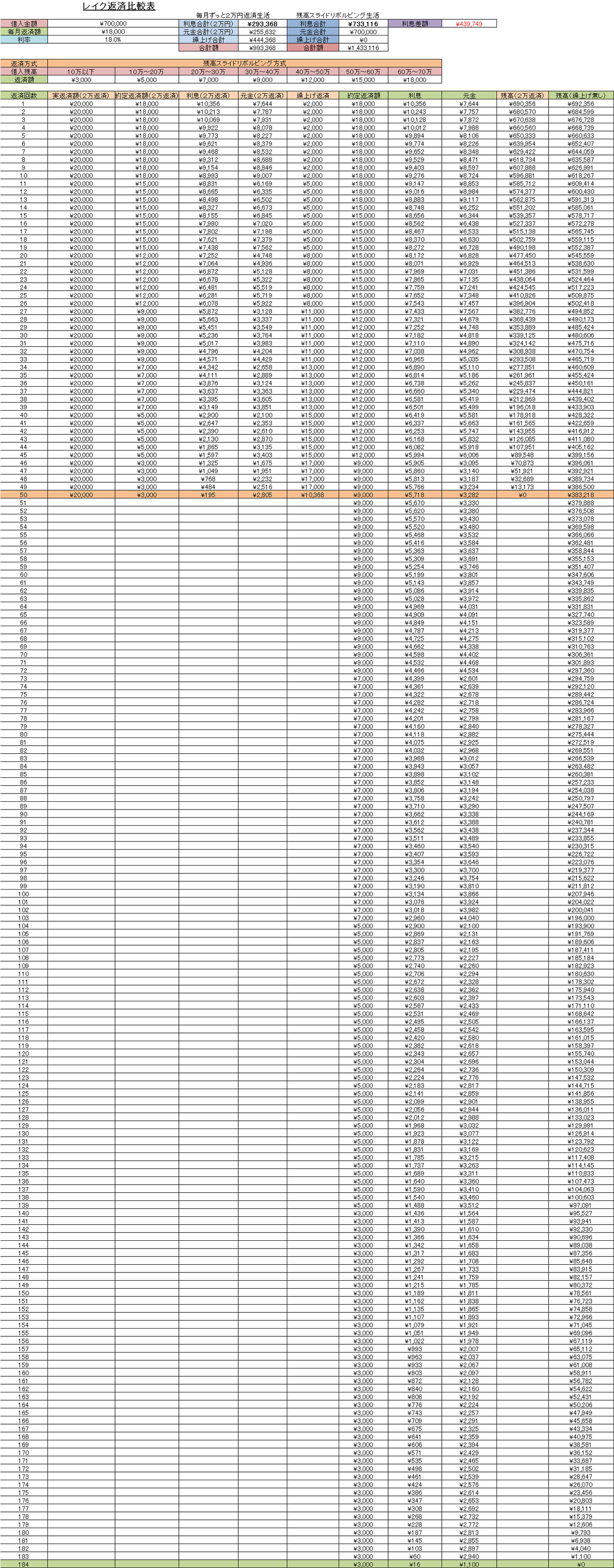 残高スライドリボルビング生活があまりにも長い戦いになるため、返済表がえらいことになりました。