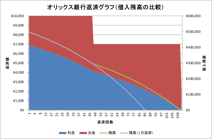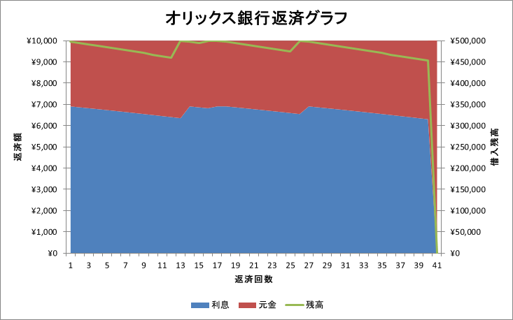 続いてオリックス銀行の返済グラフをご覧ください。