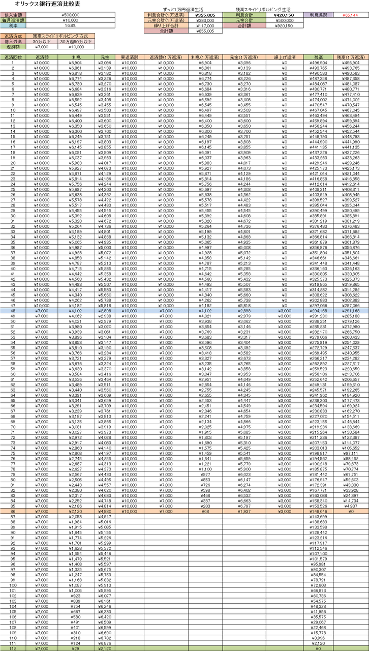 これでバンクイック、レイク、オリックス銀行の三大巨頭の返済表を全て公開しました。