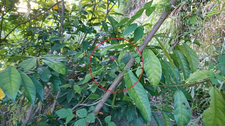 この植物に謎の実がなっていたんですが、一体なんていう植物なんでしょうね。