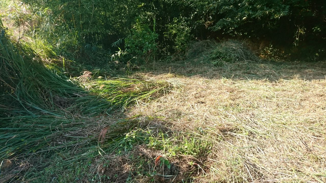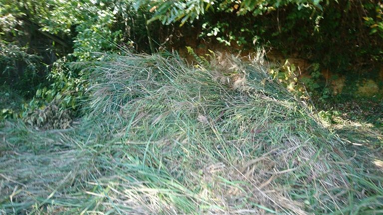 画像じゃ分かり難いでしょうが、とんでもねぇくらい積み重ねられた雑草です。ここまで刈りまくったのです。