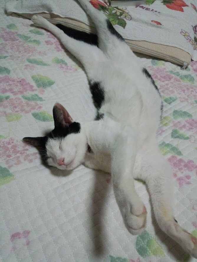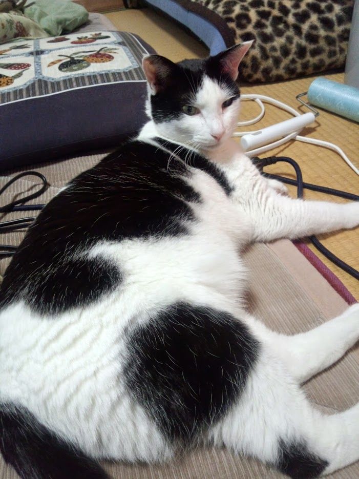 もともと子猫時代に、最寄りのコンビニ(といっても田舎なので何kmも遠く)で、うちの母に保護されました。