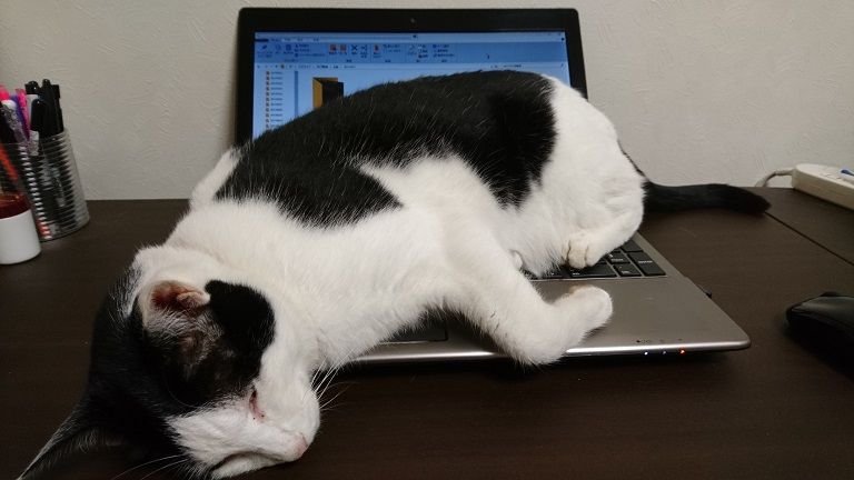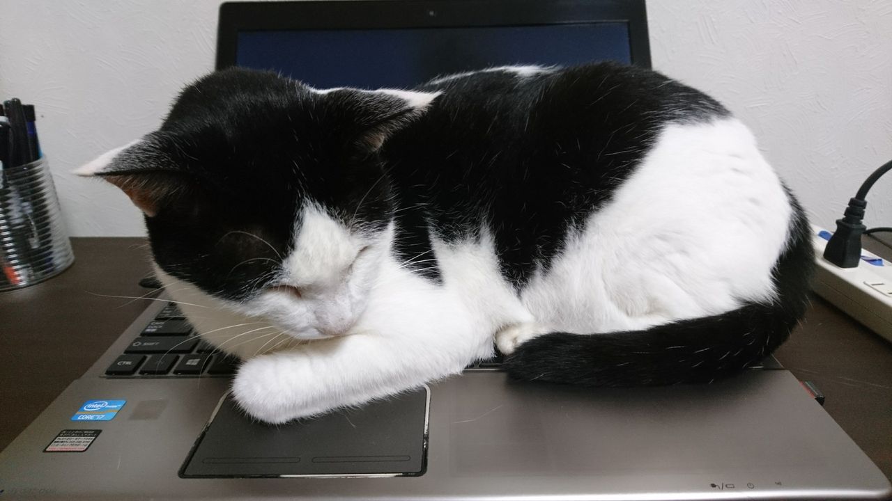 2017年10月03日 モモちゃんがパソコンの上で寝たので。 モモちゃんがパソコンの上で寝ているので、ブログの更新ができなくなりました。私にはモモちゃんをどかすなんてヒドイことは到底できませんので、今日のブログ更新はおやすみです。モモちゃんもおやすみ。